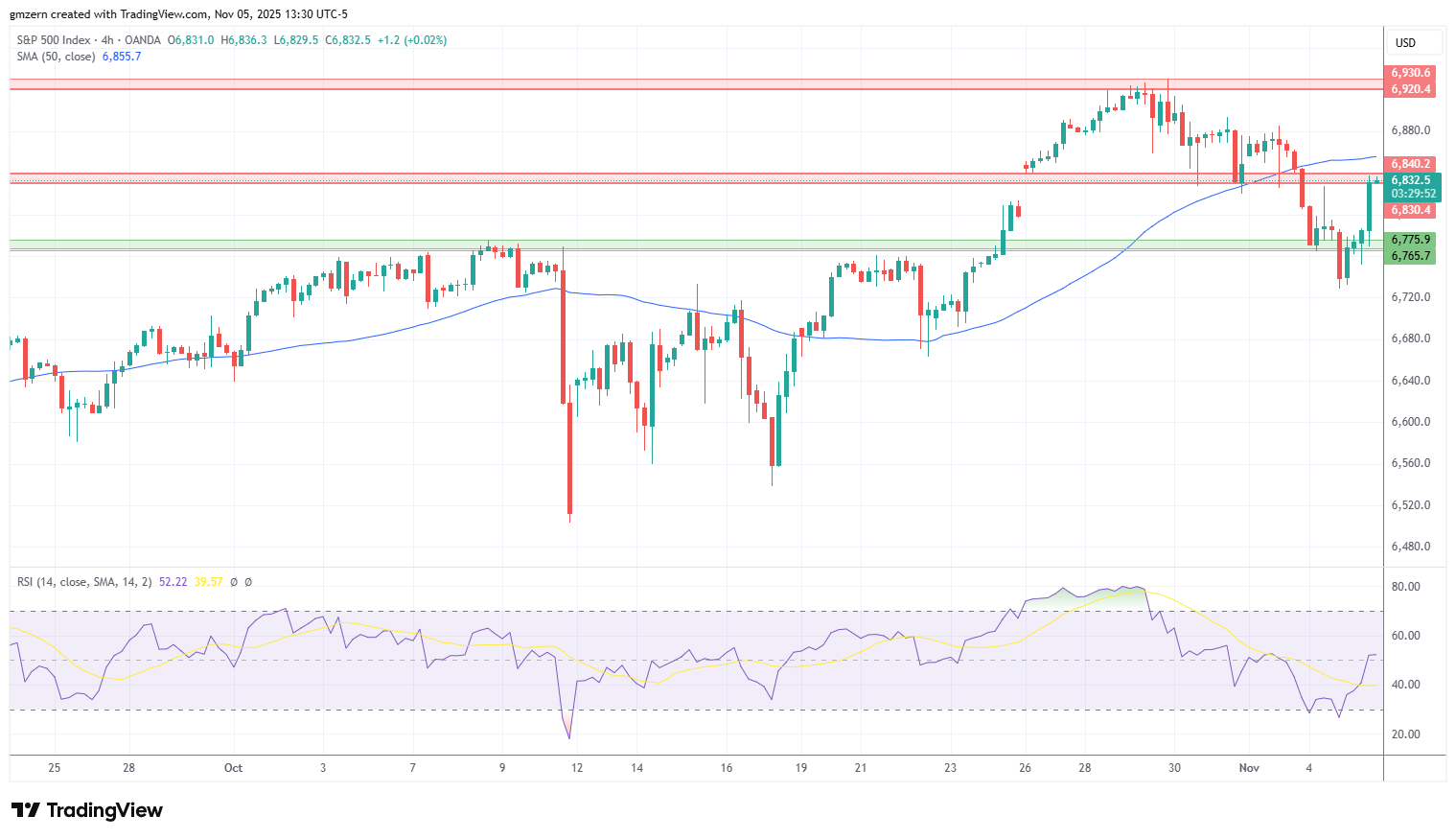 - SP500 settled above the 6800 level as traders reacted to job market data.