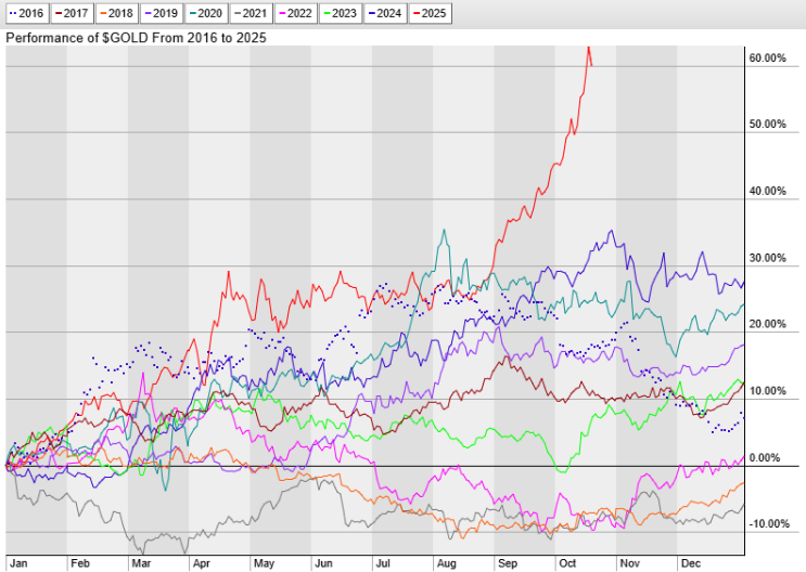 Over the past 20 years, gold has often posted strong gains between September and February. However, events like the 2008 financial crisis and the COVID-19 shock in 2019 temporarily disrupted this seasonal pattern.